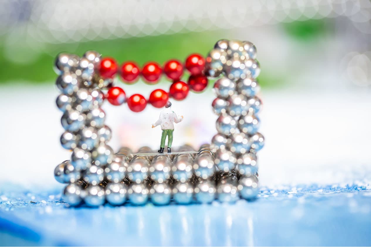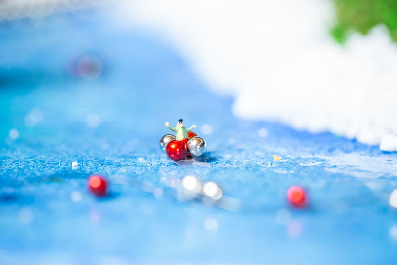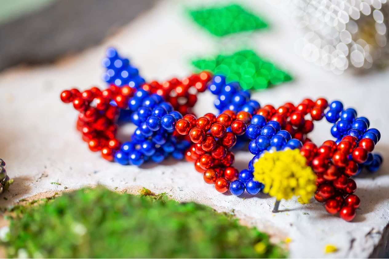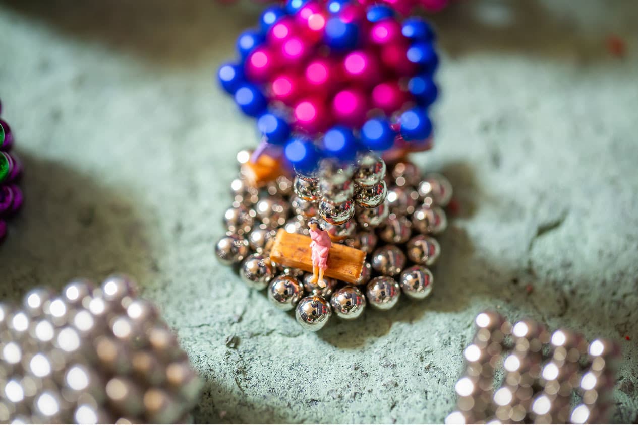 全国から集まったナノドッツの達人12名が、3日間かけて作り上げたジオラマ「ナノワールド」です。約30,000粒の球体磁石を使い、知恵と技術を集結させ作りあげました。